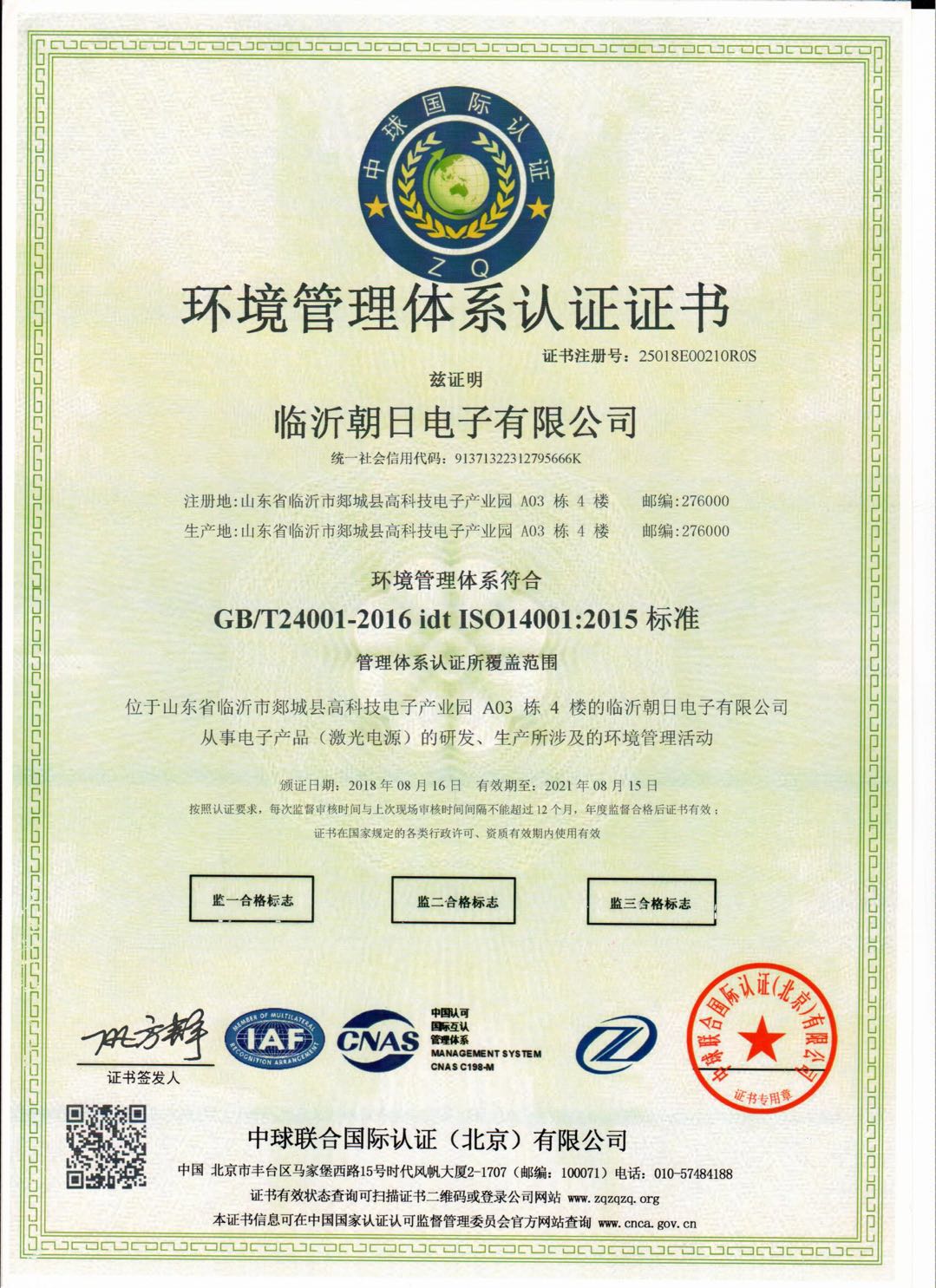 公司名:山東朝日電子有限公司 工廠地址:山東省臨沂市郯城高科技電子產(chǎn)業(yè)園A3棟4樓