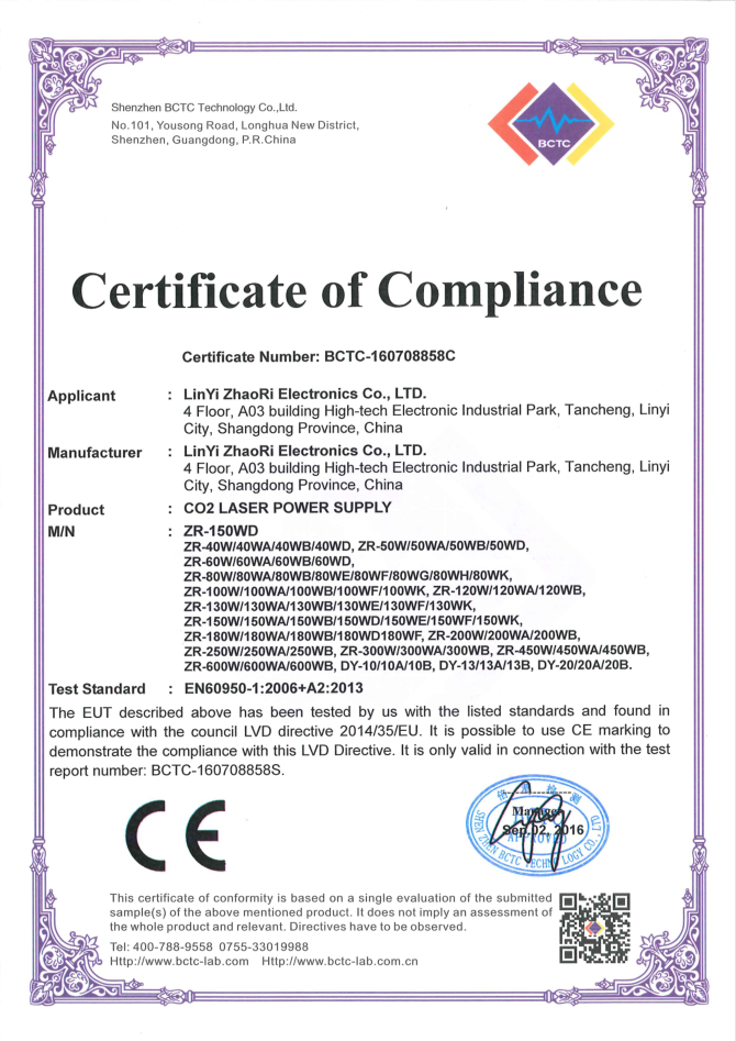 • 山東朝日電子有限公司是一家從事CO2激光電源研發(fā)、生產(chǎn)、銷售于一體的專業(yè)廠家,主要產(chǎn)品為40W/50W/60W/80W/100W/120W/130W/150W/200W/300W/400W二氧化碳激光電源。公司自2003年成立以來,始終堅(jiān)持“以質(zhì)量求生存,靠信譽(yù)謀發(fā)展”的理念.公司擁有業(yè)界高素質(zhì)管理人才和技術(shù)精英,所有原材料都經(jīng)過嚴(yán)格細(xì)致的檢測檢驗(yàn),生產(chǎn)流程嚴(yán)格貫徹執(zhí)行ISO9001質(zhì)量管理體系。卓越的品質(zhì)、合理的價(jià)格和全體員工的不懈努力使我們的公司已穩(wěn)步走在行業(yè)的前列。